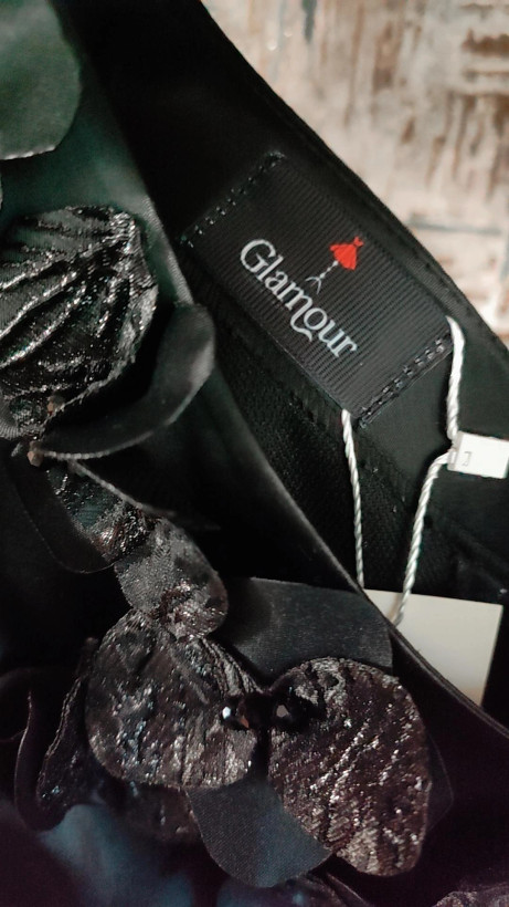 بالاتنه ساتن با دیزاین گل: بالاتنه لباس از ساتن مرغوب دوخته شده و با دیزاین گلهای سهبعدی (مشابه تصویر) بر روی یقه تزئین شده است، که جلوهای خاص و بسیار شیک به قسمت بالایی لباس میبخشد.