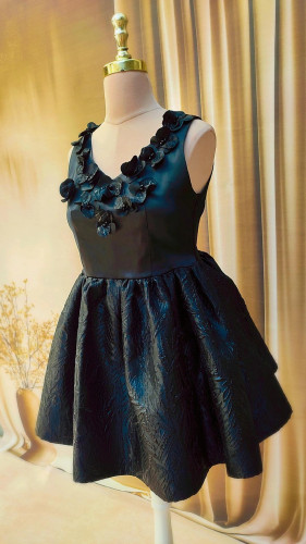 لباس مجلسی با دیزاین گل مخملی و جواهر دوزی
